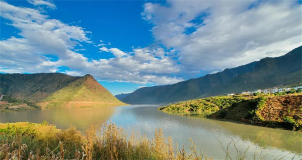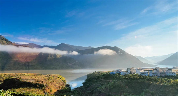 清晨,行至江邊,竟見一灣碧綠的江水。兩岸起伏的山峰掩映在薄霧里,風起時,霧溪谷,嵐靄飄逸,夢一般旖旎曼妙,情一般輕柔纏綿。注視著江水中的倒影,將一顆世俗的心沐浴在一片清瑩里。置身其間,感覺這里所有的景物都在緩慢中后退,仿佛是一部充滿異域風情的電影,那些依次出場、退場的人和物的片段,在記憶的印痕里逐漸清晰、明朗,從此,那些藏在金沙江里的歲月過往,就被一個個映射出來......