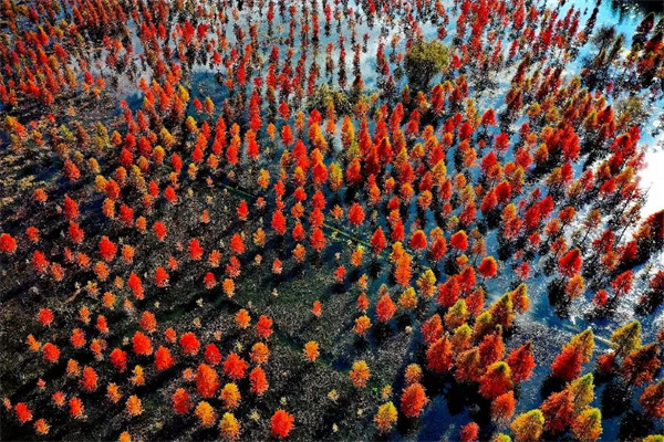 清澈的水面上倒映著一排排整齊的水杉樹(shù),映襯著冬日溫暖的陽(yáng)光,似莫奈筆下一幅色彩斑斕、濃墨重彩的油畫(huà)。不時(shí)有幾只白鷺飛過(guò),或在水面捕食,或在林間嬉戲……這是一個(gè)能讓你靜下來(lái),慢下來(lái),悠閑自在,享受生活的自然之地。