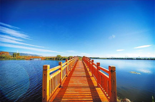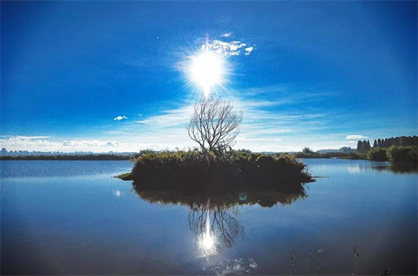冬季的濕地有著自己的色彩,云影天光倒影在水面上,寂靜、空靈,別有一番韻味,微風(fēng)中徐徐搖曳的蘆葦,還有草叢中盛開(kāi)的野花,交叉棧道蜿蜒在一片波光粼粼中,無(wú)不訴說(shuō)著王家堆濕地冬季的故事。