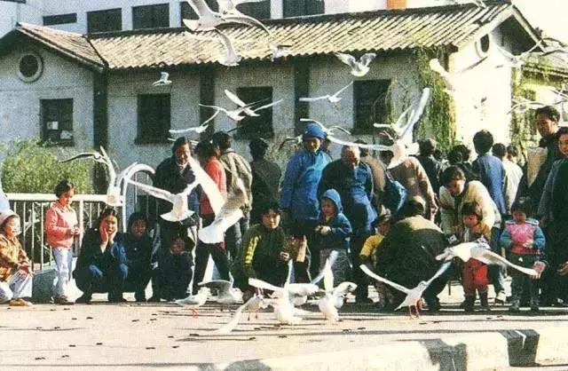 “海鷗最重情義,心細著呢。前年有一只海鷗,飛離昆明前一天,連連在我帽子上歇落了五次,我以為它是跟我鬧著玩,后來才曉得它是跟我告別。它去年沒有來,今年也沒有來……海鷗是吉祥鳥、幸福鳥!古人說‘白鷗飛處帶詩來’,十多年前,海鷗一來,我就知道咱們的福氣來了。你看它們那小模樣!嘖嘖……”海鷗聽見老人喚,馬上飛了過來,把他團團圍住,引得路人都駐足觀看。