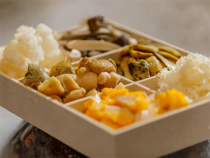 【七如意】主打本土菌菇火鍋,根據(jù)季節(jié)特供,六種野生菌拼盤,每月帶您領(lǐng)略不重樣的時(shí)令山菌。以菌菇、蔬菜、瓜果搭建的素食樂園,遵循著“不時(shí)不食”的古人智慧,跟隨著時(shí)令的腳步,帶著土地故事的食材相逢于此,以火鍋與素食料理的烹飪理念,演繹著自然風(fēng)味。