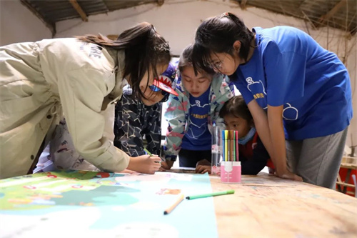 整個木屋是由孩子們一起分工、再合力創造,除了完成自己認領的工程任務之外,還需要合理搭建木制圍欄、屋頂、樹屋裝飾、鳥屋……相互請教、取長補短、互幫互助,這是一個自主溝通的過程。都讓個體與個體之間的連接更加緊密,體驗創造,無疑是對孩子最好的教學。