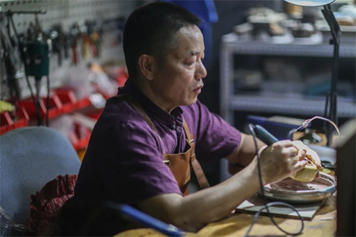 近年來,付忠華在全國、省內斬獲多項大獎,今年,付忠華被云南省人社廳評定為高級工藝美術師,即便如此,他還是不斷和自己較勁。為了讓更多人了解鋦瓷技藝,他搗鼓短視頻賬號傳播鋦瓷文化;為了讓鋦瓷技藝更廣泛地傳承發展,他曾連續多年免費傾力教學……如今,付忠華已招收學生數十人,正式收徒20余個,鋦瓷這門古老手藝,在付忠華的探索實踐中,達到“戀舊”與“煥新”的雙重平衡,并以更美的姿態,重回尋常百姓家。