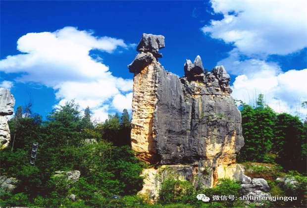 ? ? ?后人在小石林里刻下了毛澤東主席的詩篇《詠梅》絕唱,陪伴著阿詩瑪。“阿詩瑪”石像旁還播放著《馬鈴兒響來玉鳥唱》,音樂聲中,人們仿佛回到那個有著神話力量的年代,看見了阿詩瑪和阿黑哥共騎而行。傳說在美麗的阿著底,一位美麗勤勞的彝族姑娘——阿詩瑪,愛上了彝族青年阿黑。兇殘的地主熱布巴拉垂涎阿詩瑪的美貌,趁阿黑外出牧羊的時候,搶走了阿詩瑪。勇敢的阿黑聞訊火速前往營救,經過驚心動魄的斗爭,終于救回了阿詩瑪。回家時他們高興地唱起了幸福的歌“馬鈴兒響來玉鳥唱……”,但是,當兩人來到石林時,卻遭到了地主的暗算,地主勾結了崖神喚來了滔滔洪水,沖散了這對忠貞的戀人,洪水中阿詩瑪化為一尊石像屹立在小石林中的玉鳥池畔。阿黑悲痛萬分,連聲呼喚著“阿詩瑪——阿詩瑪——”,回音蕩漾在山巖之中。這個動人的故事被拍成了經典電影《阿詩瑪》,從此,“阿詩瑪”景觀備受游客青睞,成為無數人心中游石林的打卡圣地。