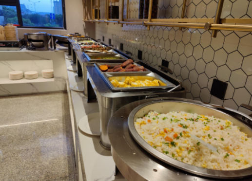 酒店早餐:中西式自助餐,30多個品種任選,云南米線小吃每日必備。