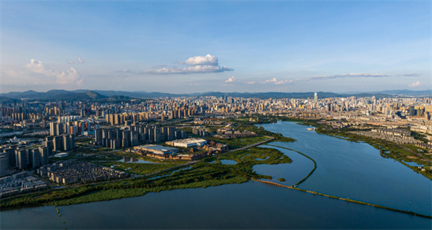紫色海浪里——這條約10公里的綠道,是自然與人文交織的詩行。如詩如畫的水之橋,兩側(cè)有濕地、水杉以及紫水雞等,