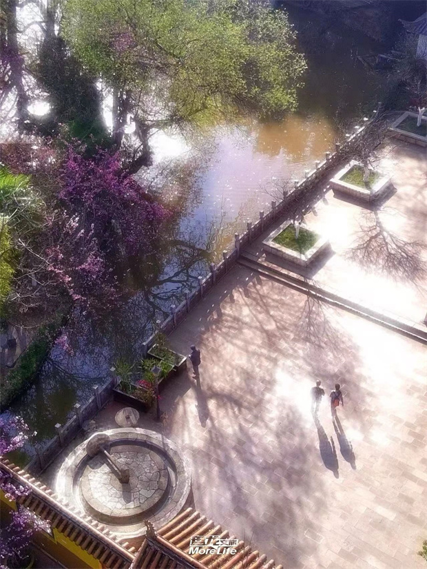 旋舞蹈。公園里,潭水是天然的硯臺,將龍泉觀的飛檐、宋柏的虬枝與漫天的花云盡數拓印。站在石拱橋上看自己的倒