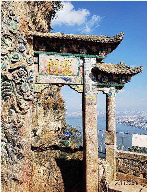 龍門位于西山的終端,北起三清閣,南至達(dá)天閣,是云南最大、最精美的道教石窟。龍門勝景以“奇、絕、險、幽”為特色,雄居昆明西山眾多的名勝之首,到昆明的游客都要去游覽,有“不到西山枉到昆明,不登龍門枉游西山”之說。龍門石窟地勢險峻,上接云天,下臨絕壁,被稱為西山之絕。
