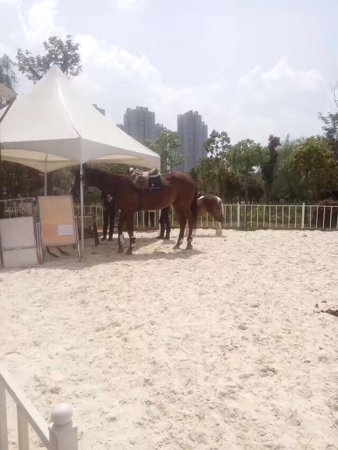 在公園內(nèi),有一塊場地供游人騎馬,是公園的一大亮點(diǎn)。