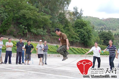(2)、拓展規則與要求:參賽選手在搖繩隊員的配合下依次穿越長繩,無論成敗穿越后返回原隊伍,依次循環,記穿越成功的人數,多者為勝。時限3分鐘,在活動中被絆停后,可重新開始。數目累計,被絆停的當次數目不計。最后累計數目多的組獲勝。