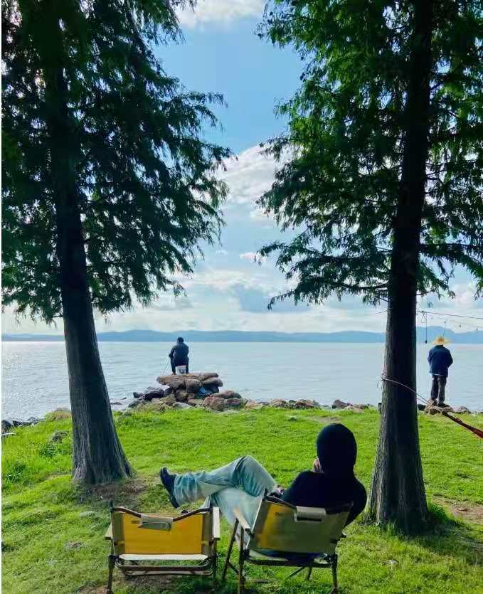 在樹蔭下吹著小風(fēng),聽著浪聲,將自己疲憊了一周的身軀扔進(jìn)軟椅,靜靜地看著遠(yuǎn)處的朋友垂釣,遠(yuǎn)離城市的喧囂,感受心靈的靜謐。