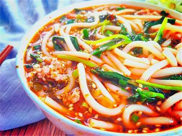 米線是云南的特色小吃。米線是經過用大米發酵、磨漿、澄濾、蒸粉、壓制、漂洗等工序制作而成的。云南人愛吃米線,一日三餐幾乎都有米線。