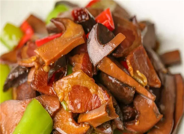 肉的彈性十足,柔嫩細(xì)滑,重口的蘸水掩蓋了腥氣,而豬皮非常地Q,吃起來很爽。