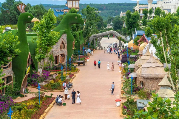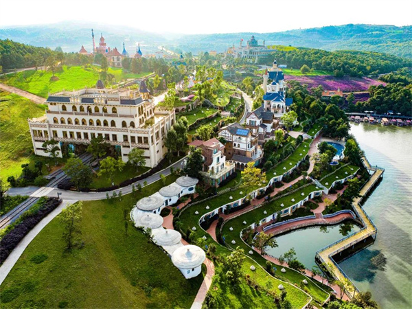 小鎮依托3295畝的鳳龍灣水庫,森林覆蓋率達83%的良好生態資源,和敘昆米軌、貴昆準軌、三橋同心等遺址資源,發揮位于昆明1小時交通圈的區位優勢,形成山——湖——河流——森林——白鷺棲息——田園風光——童話建筑風貌為一體的景觀格局,打造生態童話小鎮。