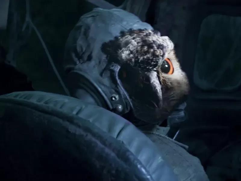 在《云南蟲谷》中胡八一和Shirley楊在夫妻樹里發現美軍運輸機,結果看到飛行員的頭居然在動,當“飛行員”突然轉頭,露出一張毛茸茸的雕鸮面孔,不少小伙伴嚇得把手機都扔了。