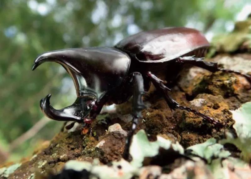 橡膠木犀金龜屬鞘翅目犀金龜科,也叫姬獨角仙或姬兜,在農村,因其喜歡在牛糞下打洞產卵,云南俗稱“牛屎爬”。橡膠木犀金龜食性雜,受驚時會摩擦身體發出響亮的聲音。雌雄異型,雄性個體有頭角和胸角,但個體差異很大,有些雄性的角非常威武,有些雄性的角只是一個凸起。雌蟲無角,常在腐殖質多的地方產卵。成蟲以吸食樹汁為主,幼蟲喜食腐殖土和朽木,屬于分解者。國外分布在東南亞及南亞各國,國內分布在南方的廣東、廣西、海南、福建、云南等地。