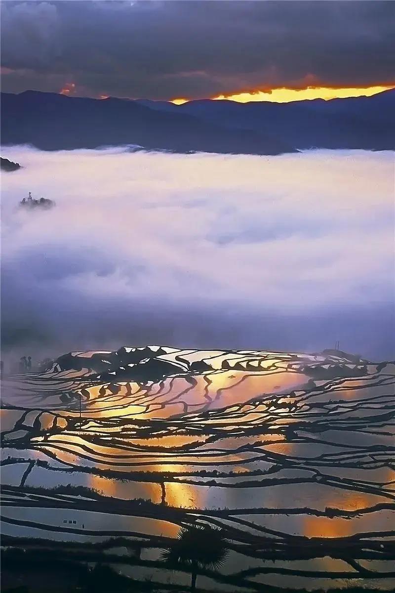 世界上集中連片最大的梯田,好似藏在哀牢山中的一塊璞玉,令人心馳神往。在這里,梯田與村莊、森林、水系相映成趣,構成了一幅幅美麗的畫卷。梯田云海厚實變幻莫測,晨光燦爛柔美,氣勢壯觀,姿態美妙。