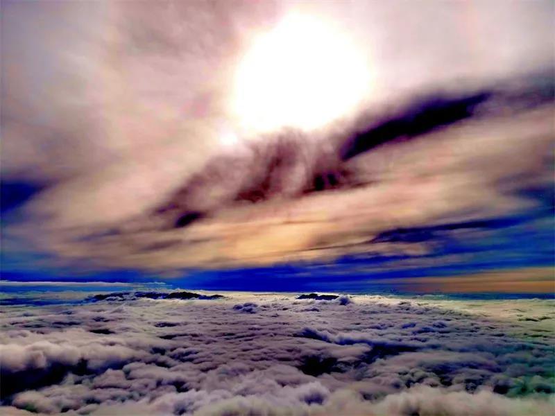 哈巴雪山雄偉壯觀,云海秀麗別致,纏山舞動,茫茫一片。云霧形成之初,成片狀的云都聚積在山坳里,隨著時間的推移,云層漸漸加厚,順著山谷緩緩蔓延,時而爬升,時而下降,山“海”相約,纏綿悱惻。