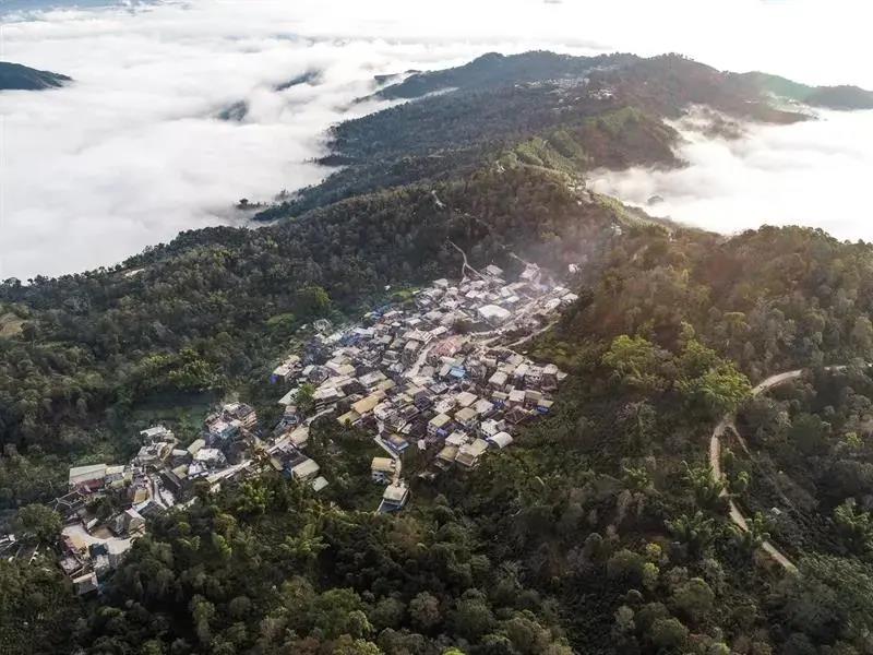 基諾山峰巒疊嶂,谷地幽深,景色優美。入冬的早晨,當第一縷陽光灑在山梁上時,山谷中的韻味便一股腦噴涌出來,形成千姿百態的云海,山林、綠野、人家都被云海漸漸浸潤、點彩,身處其間,如臨幻境。