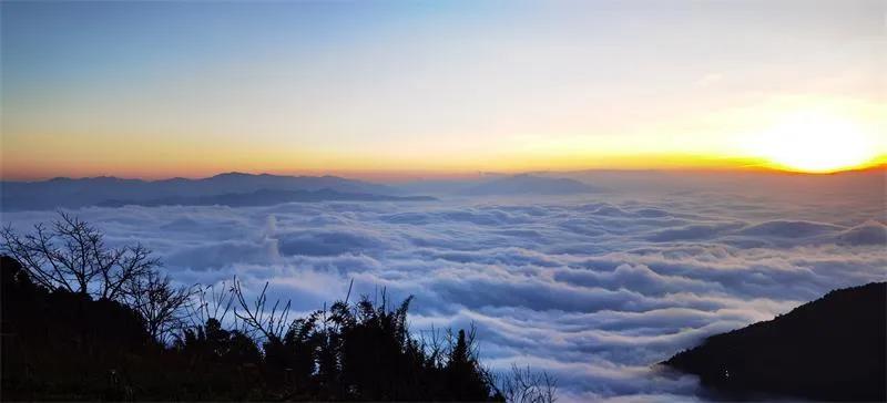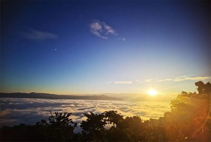哀牢山“云海日出”景觀,堪稱“滇中云海一絕”。晨光熹微,云海翻騰,潔白的流云把一座座山巒遮掩得若隱若現,云霧輕輕地碰撞、交融、推搡,緩慢翻騰、起伏,悄無聲息向腳下翻滾而來,似有騰云駕霧的暢快之感。