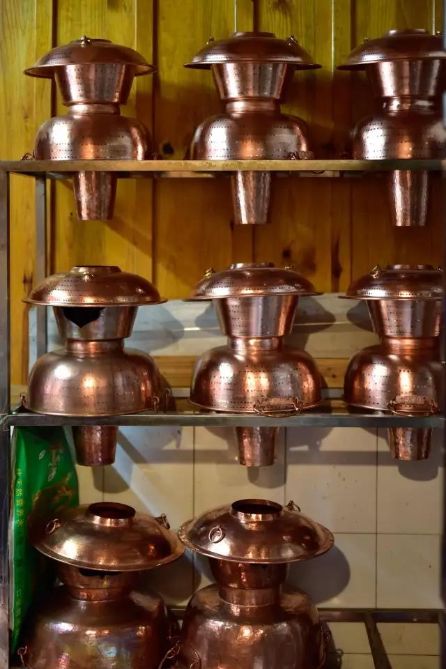 “炊鍋由黃銅鑄成,外圍由下自上擴(kuò)大成圓形,內(nèi)有炊窗,中為容器,大者可供近百人食之,小者二三人亦可。”馬姐告訴我們。