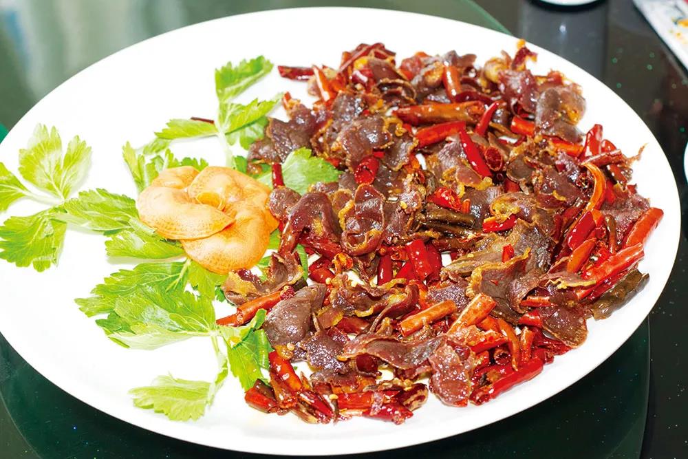 糊辣炒肝是將羊肝片薄,熱鍋溫油炒熟即可。糊辣炒肝一上桌,王天順就提醒我們趁熱吃,這時(shí)的炒肝最鮮嫩。