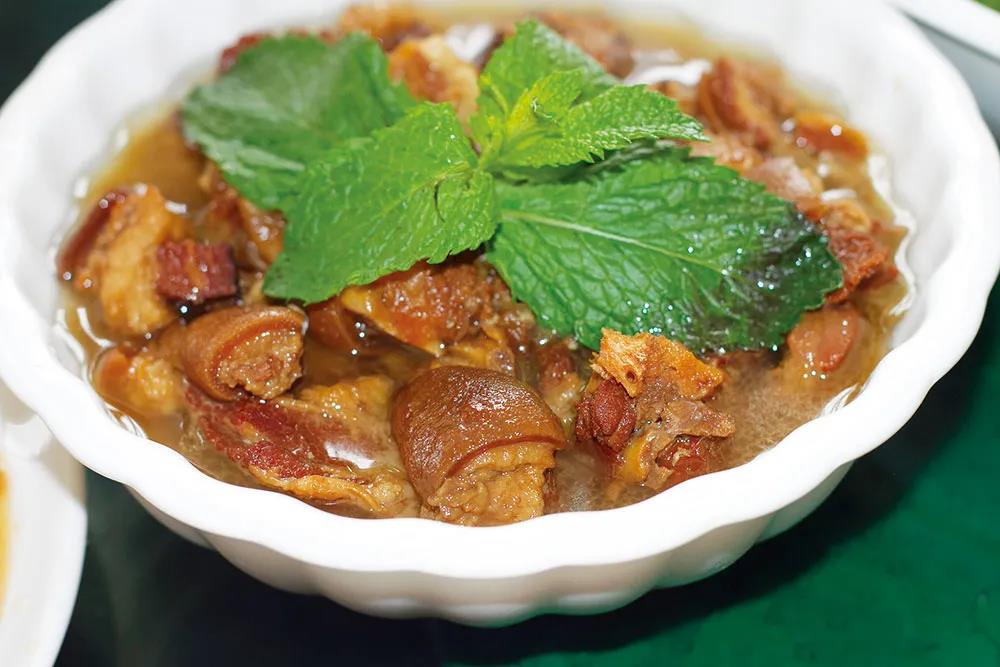 羊雜碎也有自己的吃法。蔥芫雜碎,是用黑山羊頭、蹄、內(nèi)臟制作,原材料洗凈切小,入鍋漲沸,清水漂凈再入鍋燉煮,熟后盛入盤(pán)中, 放上蔥花、芫荽,湯色清亮鮮甜,不油膩。