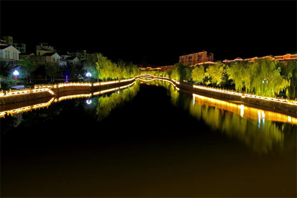祿豐的城建在東、西、南三河交匯處,一個南北向的大壩子上。壩子像展開的扇子,弧形的扇頭是山,扇子的兩邊也是山,扇尾就是三河交匯處了,祿豐城就建在扇面上。史料記載,祿豐城是元朝賽典赤治滇時修建的。現(xiàn)在老城已經(jīng)蕩然無存,但祿豐城的八景留了下來:西河煙柳、群峰疊翠、南嶺浮嵐、霸橋星影、春燈映月、文筆連云、桂香書院、溫泉繞霽。(溫泉遍布也是祿豐水的一大特點。)現(xiàn)在的祿豐城哪止八景。三河九湖:工整的河堤,南河堤上仿侏羅紀時代的林木山石。西河河堤上延綿十幾里的竹林。東河更是一個雄偉,寬闊的河面,下雨了,河面浩浩蕩蕩,枯水季,一河的游魚水鳥。分為三個臺級的河堤,一個臺級有一個臺級的景物,一個臺級有一個臺級的自我;白鷺成行魚蝦成群的東湖,山環(huán)水繞的石門湖,翠竹環(huán)抱滿湖睡蓮的龍湖……仿明清風(fēng)格建筑精美的金山古鎮(zhèn)等。祿豐,到處都是風(fēng)景。