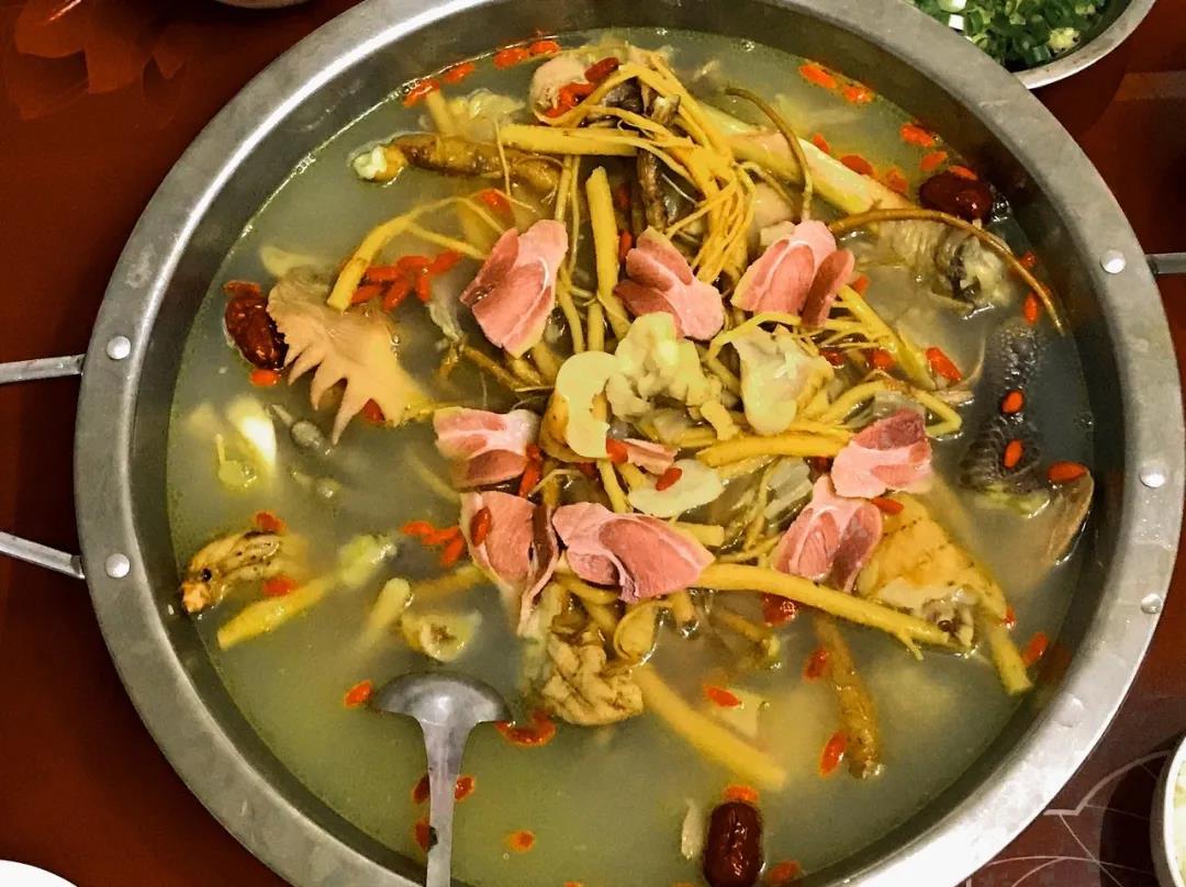 昭通天麻火腿雞火鍋,乍一聽(tīng)這名字就給人一種很養(yǎng)生的感覺(jué),吃火鍋還能養(yǎng)生是什么體驗(yàn),估計(jì)重慶娃兒想都不敢想。昭通小草壩天麻、宣威火腿、文山三七、加上農(nóng)村老母雞配合上各種滋補(bǔ)藥材,就是一鍋營(yíng)養(yǎng)價(jià)值爆表的養(yǎng)生火鍋。