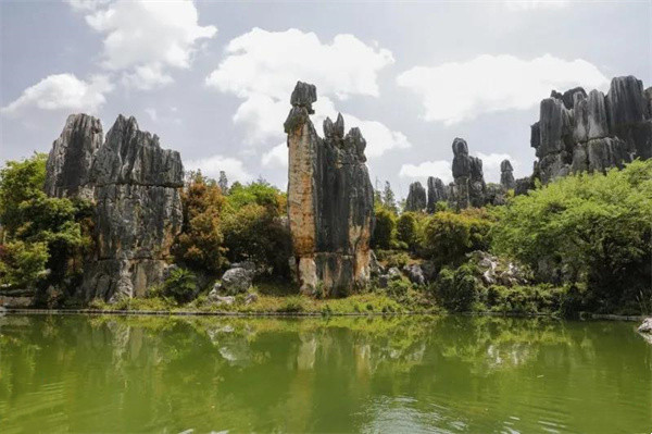 在石林風(fēng)景區(qū)內(nèi),有一處碧波粼粼的湖水,湖畔屹立著一座石峰,石峰的形狀酷似一位撒尼少女。每天都吸引著無數(shù)的游客前來觀賞、留影,這就是著名的“阿詩瑪石峰”。