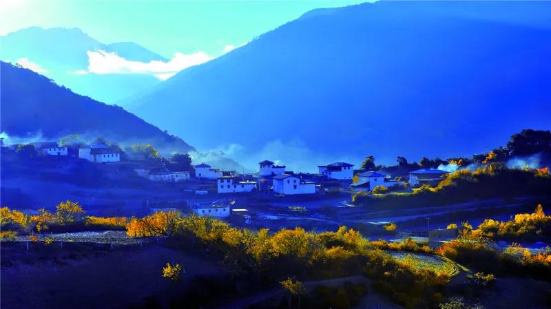 牦牛走過香巴拉的山崗?fù)虿贿h(yuǎn)處的家: