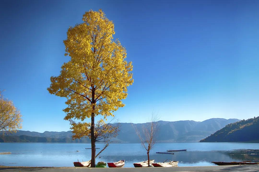 湖色更顯碧藍,